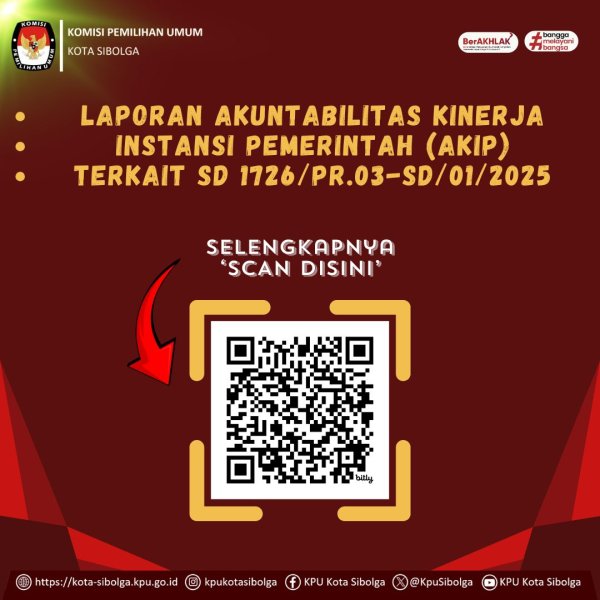 Laporan Akuntabilitas Kinerja Instansi Pemerintah (AKIP) KPU Kota Sibolga Sabtu, 14 Juni 2025 16:59 69 Berikut kami sampaikan Laporan Akuntabilitas Kinerja Instansi Pemerintah (AKIP) KPU Kota Sibolga DISINI Baca Selengkapnya