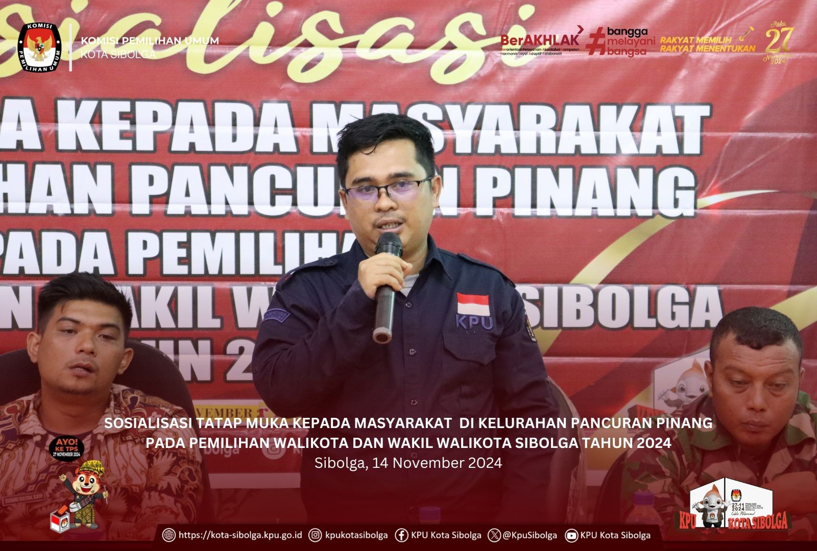 Sibolga - KPU Kota Sibolga melaksanakan Sosialisasi Tatap Muka Kepada Masyarakat di Kelurahan Pancuran Pinang pada Pemilihan Walikota dan Wakil Walikota Sibolga Tahun 2024 di Aula Puskesmas Pelabuhan Sambas, Kamis (14/11/2024).