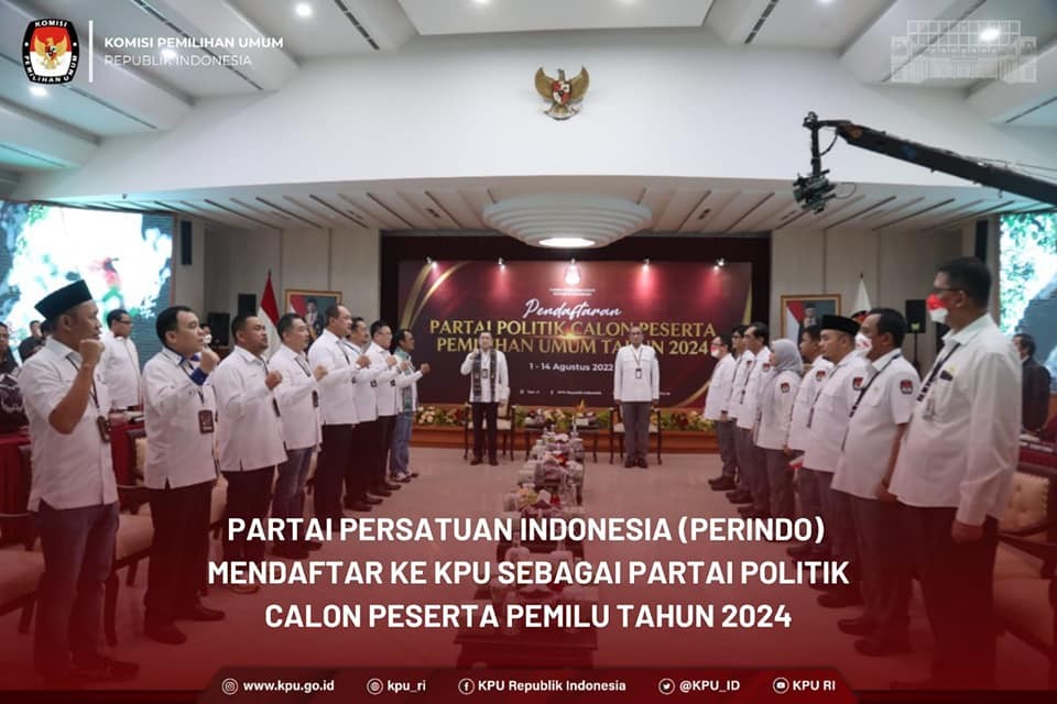 Partai Persatuan Indonesia (Perindo) mendaftar sebagai Partai Politik Calon Peserta Pemilu Tahun 2024, Senin (1/8/2022) di kantor KPU. Pendaftaran dilakukan oleh Ketua Umum Hary Tanoesoedibjo, didampingi Sekjen Ahmad Rofiq pada pukul 10.18 WIB.