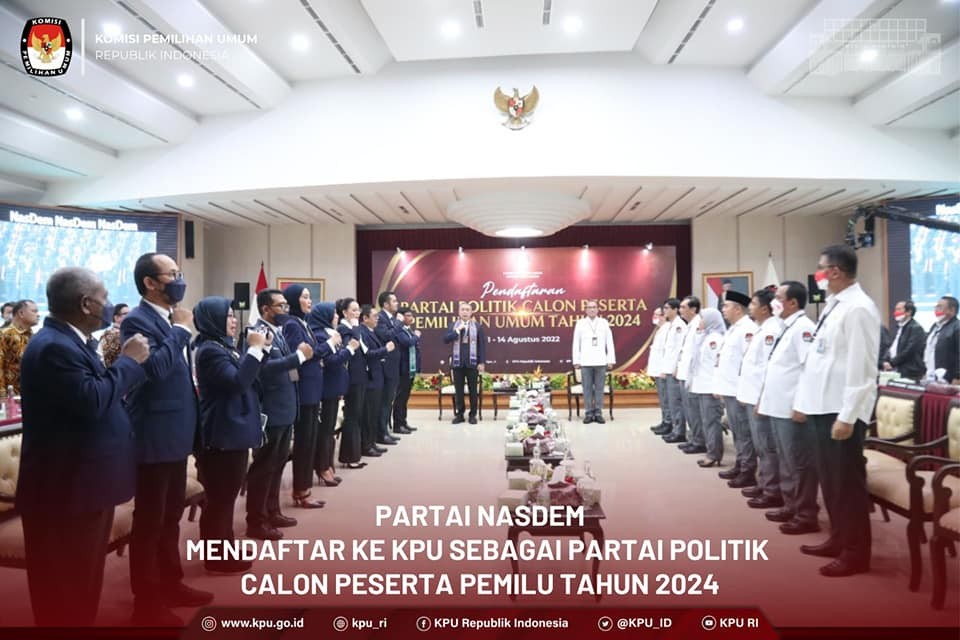 Delegasi partai disambut oleh Sekretaris Jenderal KPU Bernad Dermawan Sutrisno, didampingi Deputi Bidang Dukungan Teknis Eberta Kawima, dan diterima oleh Ketua KPU Hasyim Asy'ari, Anggota KPU Idham Holik, August Mellaz, Mochammad Afifuddin, Betty Epsilon Idroos, Yulianto Sudrajat dan Parsadaan Harahap, serta disaksikan oleh Bawaslu.