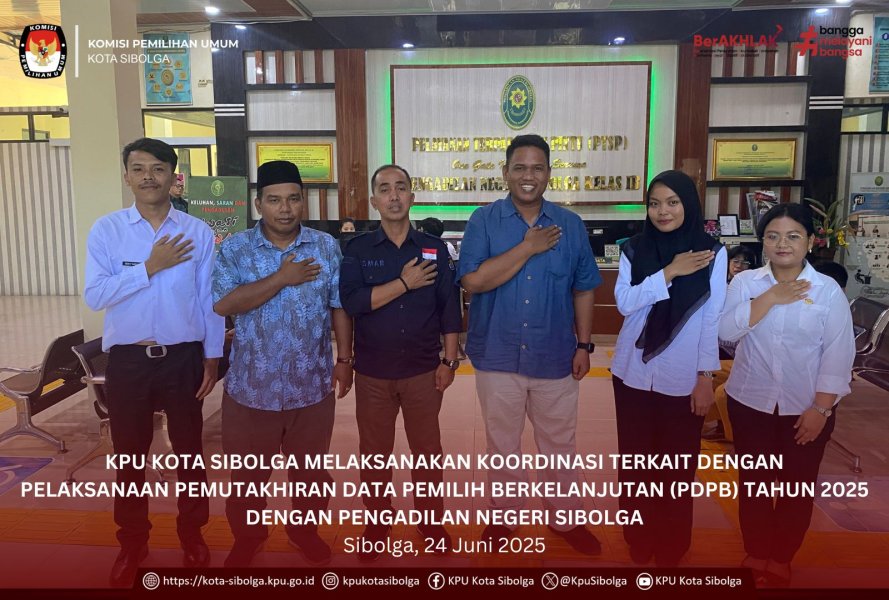 KPU Kota Sibolga menetapkan Rekapitulasi Daftar Pemilih Berkelanjutan Triwulan II Tahun 2025 di Kota Sibolga dengan total jumlah pemilih sebanyak 70.284 yang terdiri dari 34.726 pemilih laki-laki dan 35.558 pemilih perempuan.