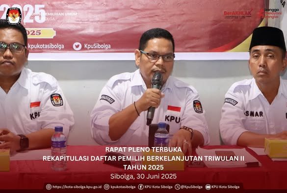 Sibolga - KPU Kota Sibolga melaksanakan Rapat Pleno Terbuka Rekapitulasi Daftar Pemilih Berkelanjutan Triwulan II di Rumah Pintar Pemilu (RPP) KPU Kota Sibolga, Senin (30/6/2025).