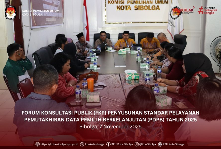 Sibolga - KPU Kota Sibolga melaksanakan Forum Konsultasi Publik (FKP) Penyusunan Standar Pelayanan Pemutakhiran Data Pemilih Berkelanjutan (PDPB) Tahun 2025 di Kantor KPU Kota Sibolga, Jum'at (7/11/2025).