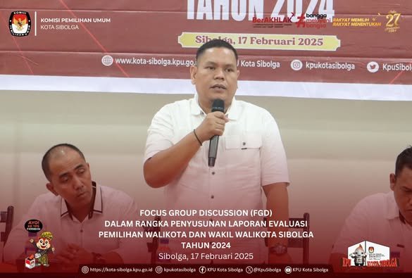 Sibolga - Berdasarkan Surat KPU Republik Indonesia nomor 314/PL.01-SD/01/2025, KPU Kota Sibolga menggelar Focus Group Discussion (FGD) dalam rangka penyusunan laporan evaluasi Pemilihan Walikota dan Wakil Walikota Sibolga Tahun 2024 di RM. Thamrin Sibolga, Senin (17/2/2025).