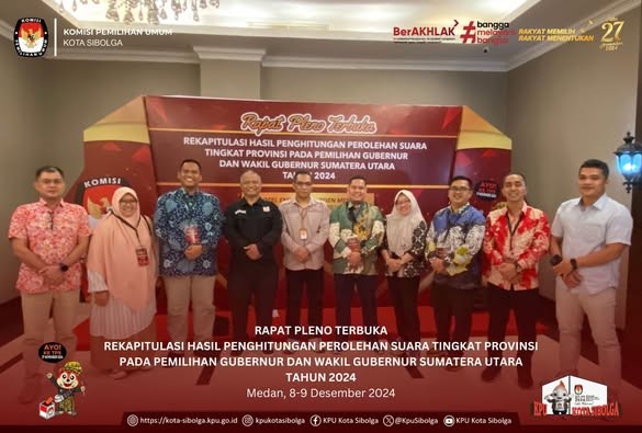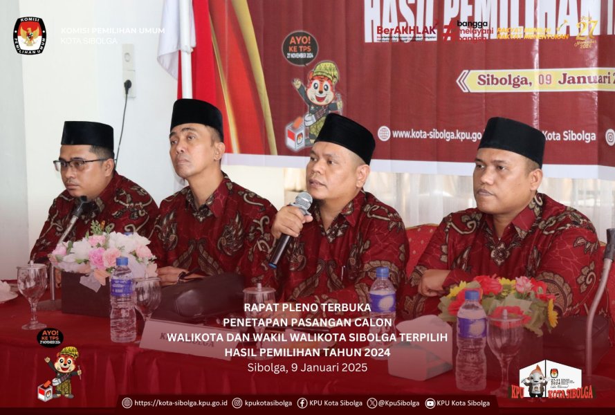 Sibolga - KPU Kota Sibolga menggelar Rapat Pleno Terbuka Penetapan Pasangan Calon Walikota dan Wakil Walikota Sibolga Terpilih Hasil Pemilihan Tahun 2024 di Aula Hotel Prima Sibolga, Kamis (09/01/2025).