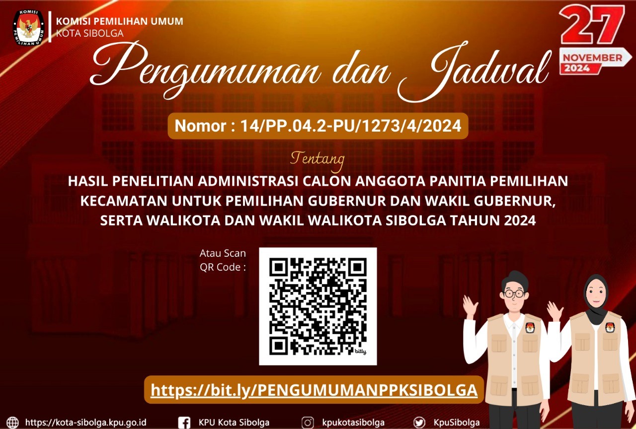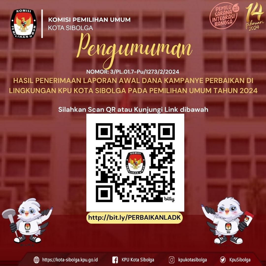 Untuk informasi lebih lanjut dapat menghubungi contact person yang tercantum atau datang langsung ke kantor KPU Kota Sibolga (Jalan FL Tobing Nomor 50 Blk Sibolga).
