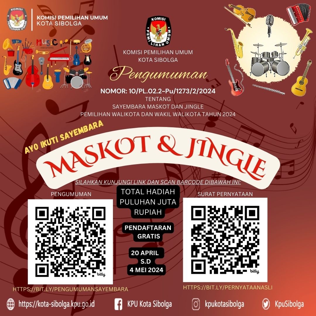 Ayo ikuti sayembara Maskot dan Jingle Pemilihan Walikota dan Wakil Walikota Sibolga! Untuk syarat dan ketentuannya dapat dilihat pada slide berikutnya.