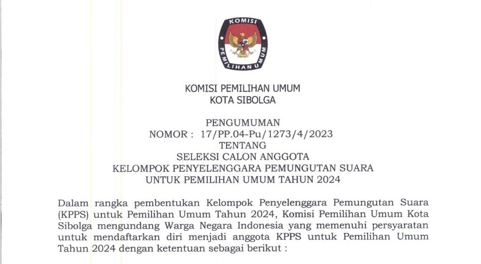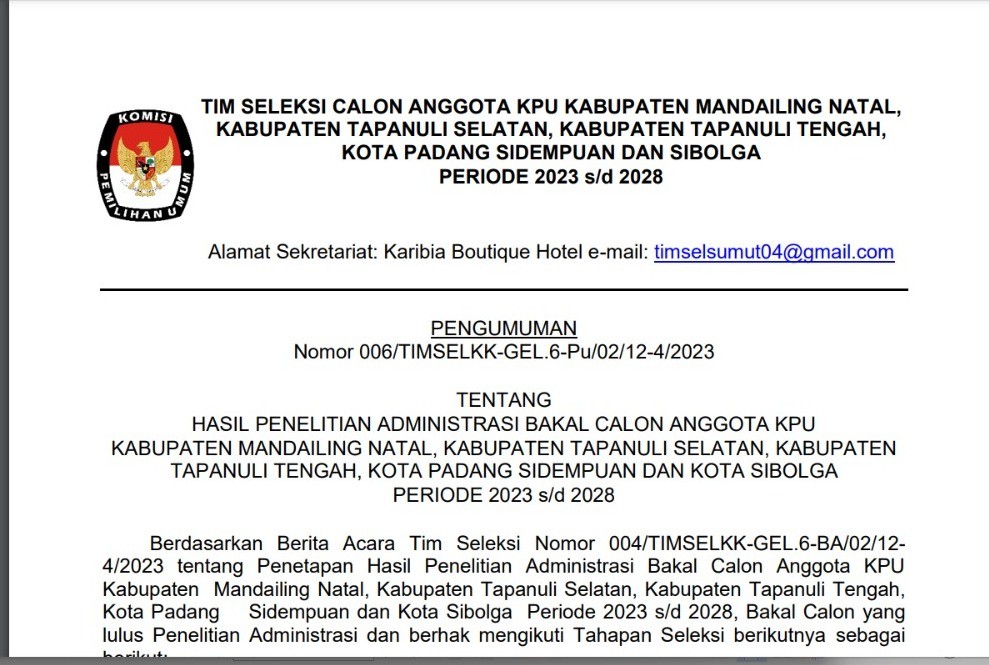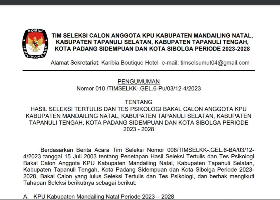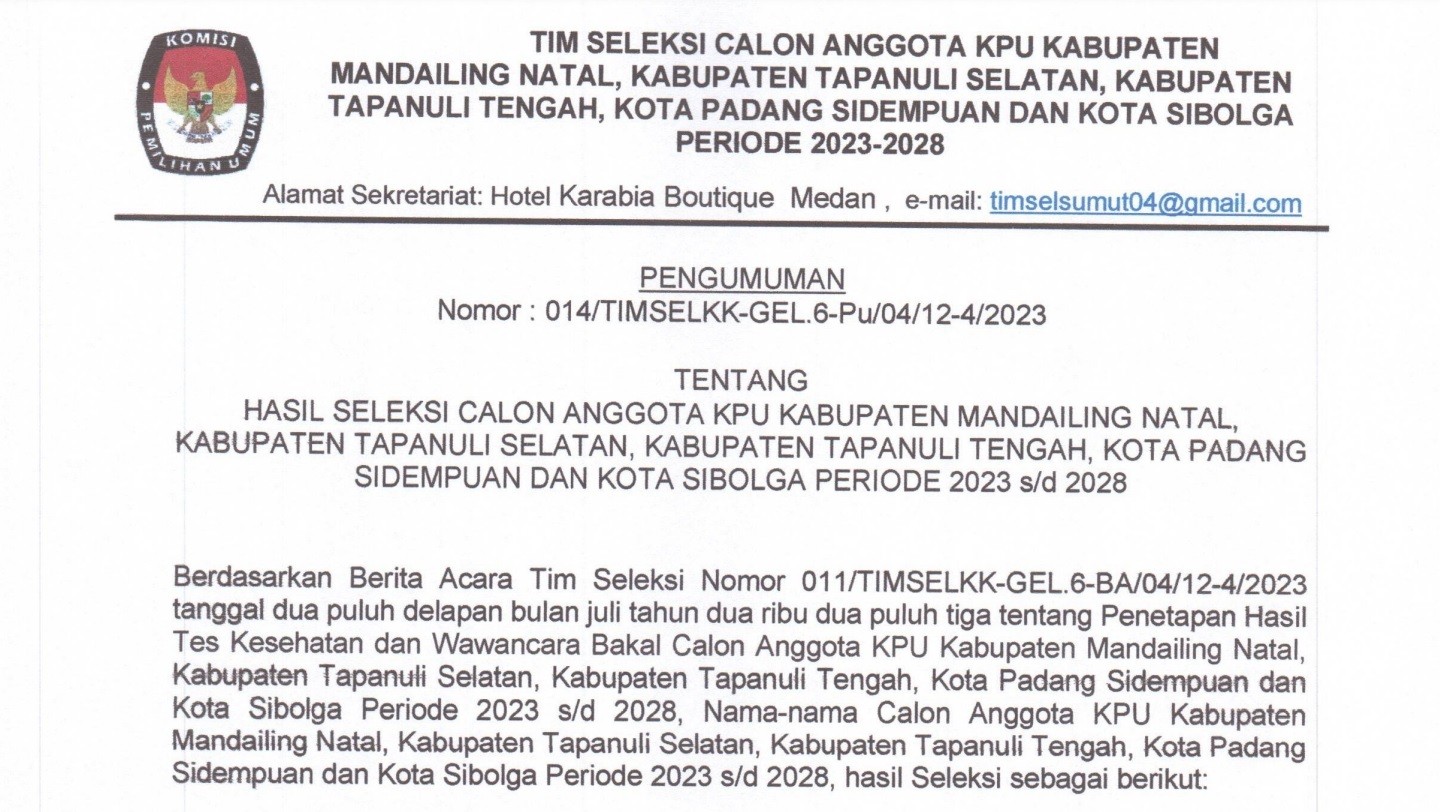PENGUMUMAAN HASIL SELEKSI CALON ANGGOTA KPU KAB/KOTA PERIODE 2023 s/d 2028