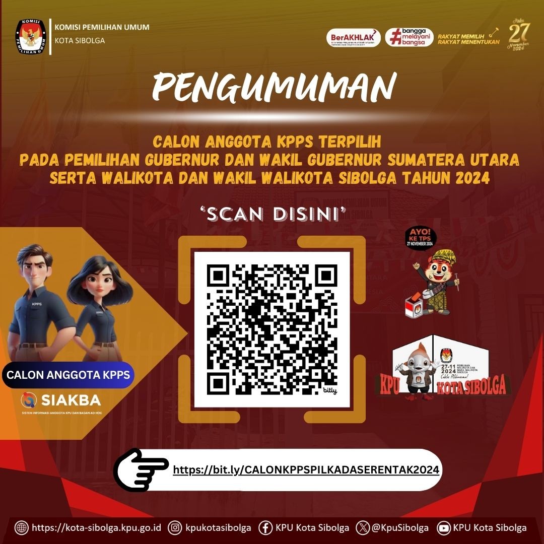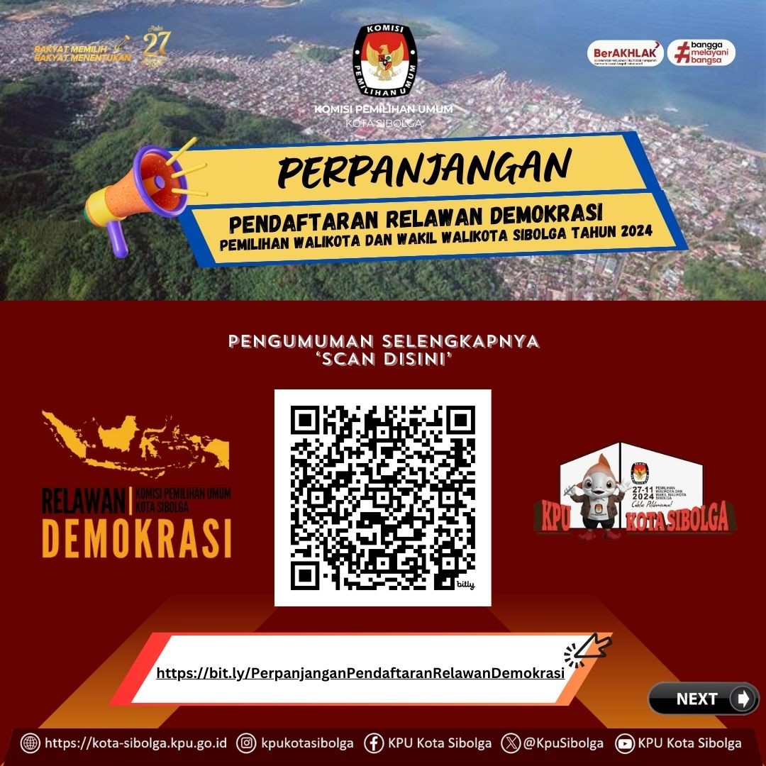 Siapkan diri anda segera, hari terakhir Rekrutmen Relawan Demokrasi pada Pemilihan Walikota dan Wakil Walikota Sibolga Tahun 2024, Selasa (15/10/2024).
