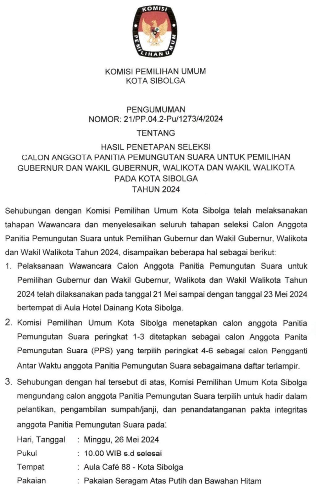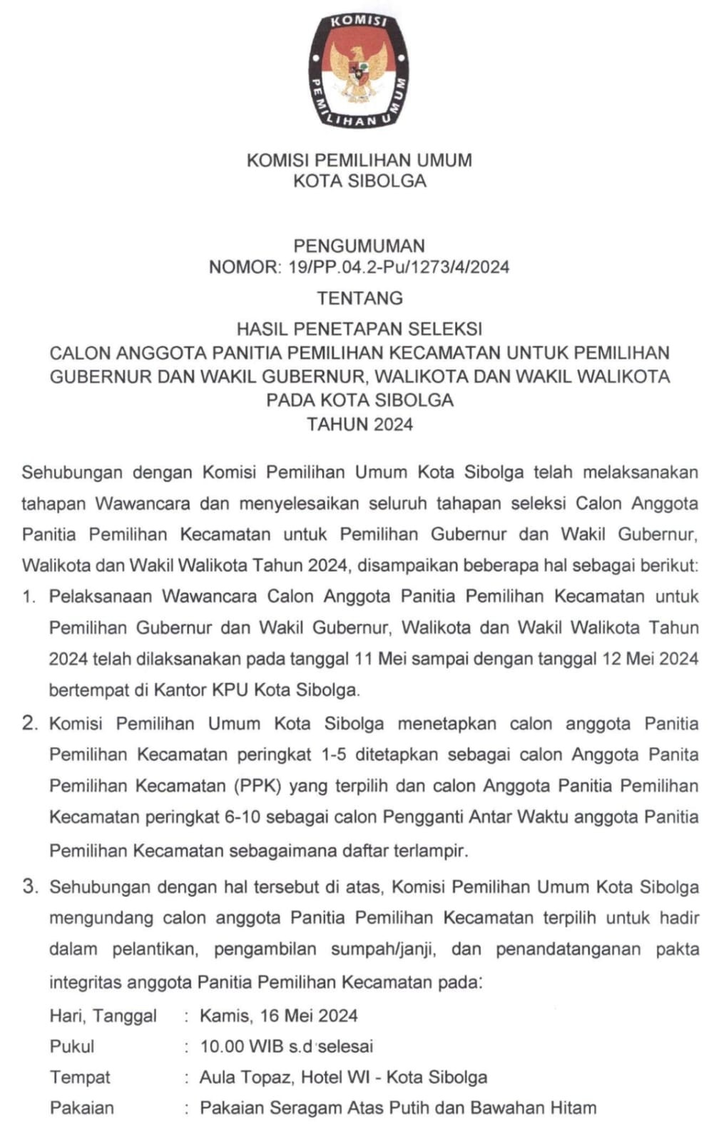 Perjanjian Kinerja KPU Kota Sibolga Tahun 2024, dapat diunduh melalui link google drive Perjanjian Kinerja Tahun 2024