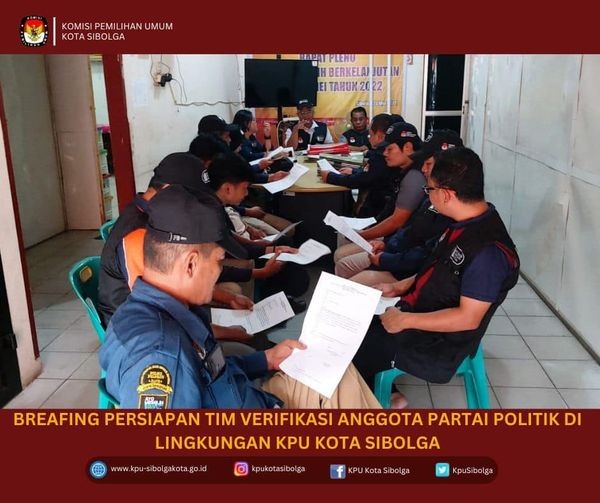 Komisi Pemilihan Umum Kota Sibolga mulai melakukan Verifikasi Keanggotaan Partai Politik pada 8 Partai Politik, yaitu: Partai PERINDO, PSI, PBB, PKN, Partai GELORA, Partai BURUH, Partai UMMAT, dan Partai GARUDA sebagaimana diatur dalam PKPU No. 4 Tahun 2022.