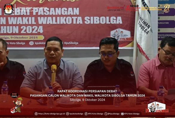Sibolga - KPU Kota Sibolga melaksanakan Rapat Koordinasi Persiapan Debat Pasangan Calon Walikota dan Wakil Walikota Sibolga Tahun 2024 di Rumah Pintar Pemilu (RPP) KPU Kota Sibolga, Rabu (9/10/2024).