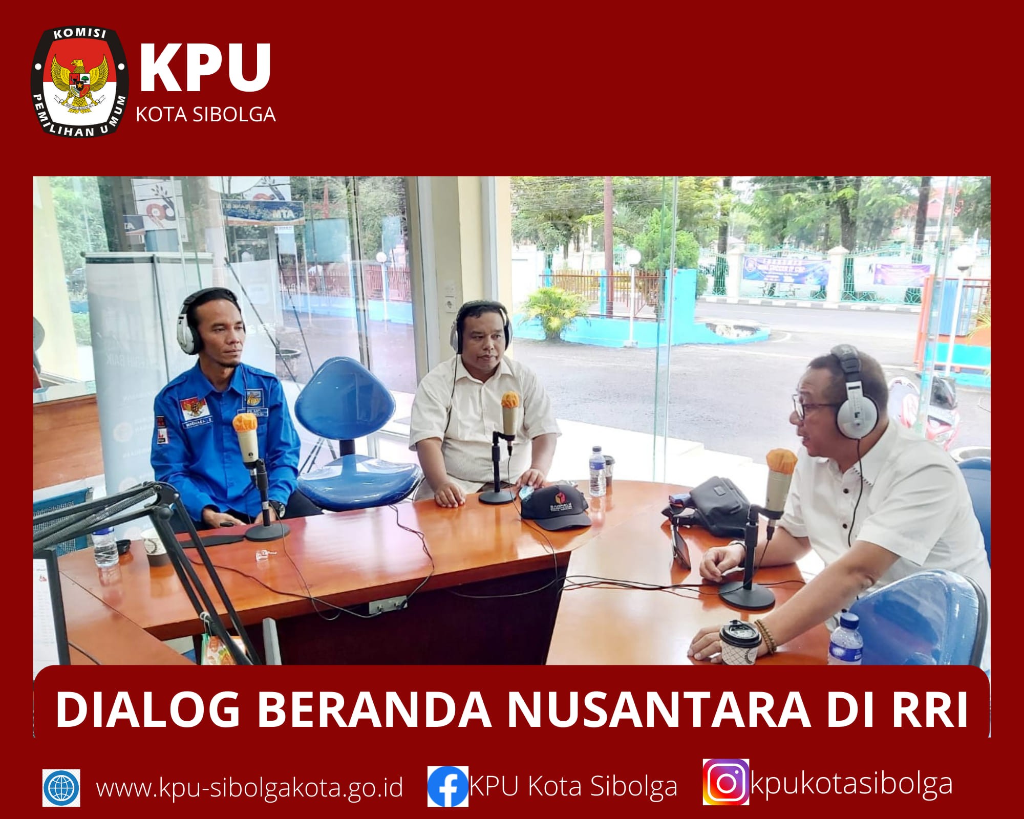hari ini Rabu (27/7) Ketua KPU Kota Sibolga; Khalid Walid bersama Ketua Bawaslu Kota Sibolga; Zulkifli Sigalingging, dan DPD KNPI Kota Sibolga; Michael Simorangkir menjadi narasumber dalam Dialog Beranda Nusantara bertajuk "Pemilu Asik, Menyatukan Indonesia" yang disiarkan live oleh RRI Pro 1 Sibolga.
