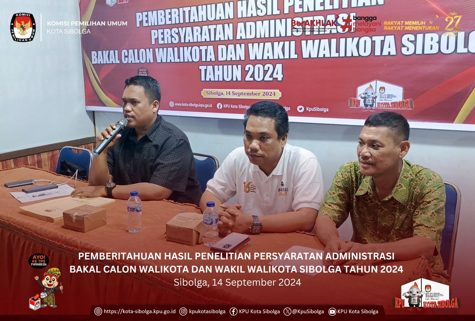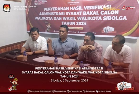 Berkas perbaikan syarat Bakal Calon Walikota dan Wakil Walikota Sibolga Tahun 2024 diterima oleh Ketua Divisi Teknis Penyelenggara KPU Kota Sibolga, Armansyah Sinaga didampingi Anggota KPU Kota Sibolga; Asmaruddin Nasution, Rahmad Kurniawan, dan Taruli Asi Parlagutan Sipahutar dan dinyatakan lengkap dan diterima.